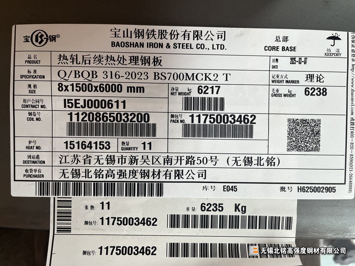 2. 高強(qiáng)板:BS600MC、BS650MCK2、BS700MCK2、BS700MCK4、Q690D、Q690E、BS800E、BS960E、BS900D。